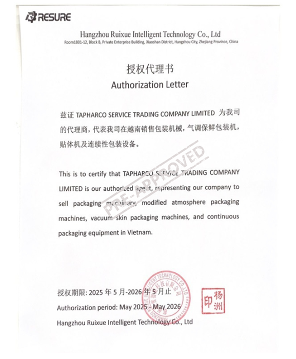 CÔNG TY TNHH TMDV TAPHARCO tự hào là đại diện bán hàng chính thức của hãng RESURE tại Việt Nam. Chúng tôi chuyên cung cấp các giải pháp đóng gói tiên tiến, đặc biệt là các loại máy dán miệng khay, đáp ứng mọi nhu cầu từ quy mô thủ công đến công nghiệp hàng loạt.